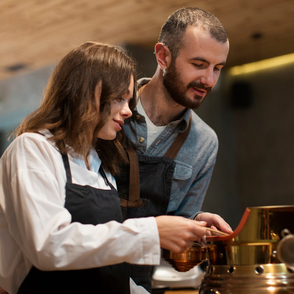 Organizziamo corsi e workshop per perfezionare le competenze dei tuoi baristi. Dall’arte del cappuccino alle tecniche di estrazione perfette, investiamo nella crescita del tuo team per garantire un servizio eccellente.